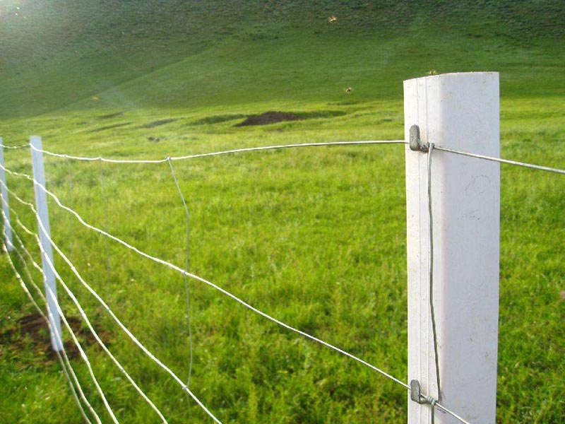 5. 牛欄網安裝過程中每隔5米-12米之間可設置一根,每隔5-10根小柱可設置一根中柱,而且設置一根T型地錨,埋設60公分左右,另外,在每個轉角處安裝一根大柱。小柱40×40×4mm;中柱70×70×7mm;大柱90×90×9mm。長度根據情況自行調整,一般分別為:小柱2米;中柱2.2米;大柱2.4米。