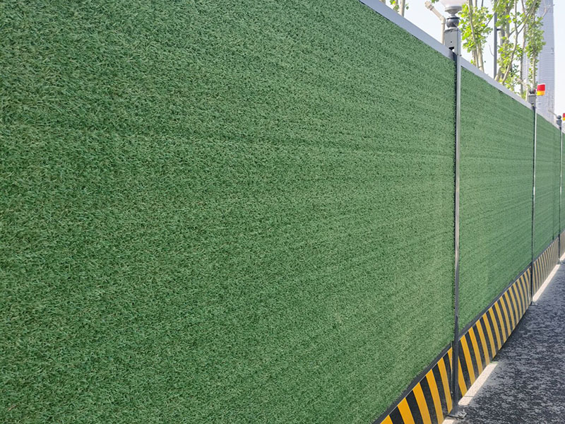 4、施工圍擋仿真草坪特殊的構造還具有防塵、防噪音等作用。