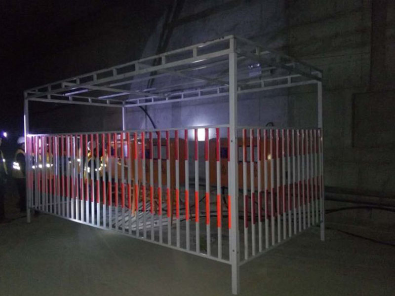 頂端可以掛注意安全等條幅,護欄上貼反光膜或刷漆,起到警示的作用。全套LOGO文字可定做,頂棚彩鋼板,頂部四面噴繪布標語,。焊接牢固,結構穩固,多種尺寸規格可定做。