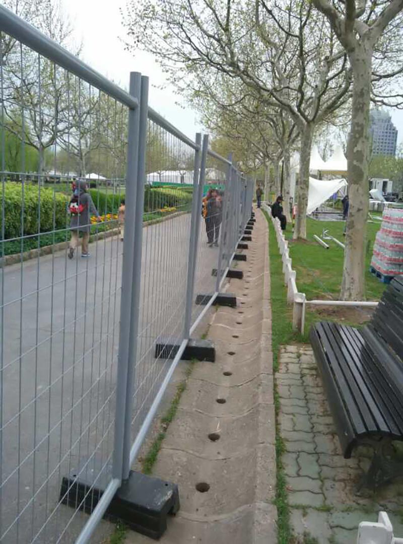 主要采用可拆接構(gòu)件將護(hù)欄主片與底座或防護(hù)柱進(jìn)行標(biāo)準(zhǔn)連接,等特定需要的時候可輕松拆除,進(jìn)行移動安裝。