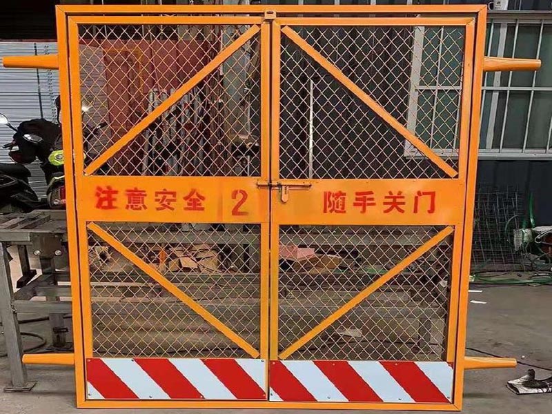 電梯防護門全部由鋼結構組成。鋼材采用國家標準材料,制作嚴格按圖施工,尺寸正確,焊接點牢固,達到安全防護之目的,電梯安全門采用檸檬黃色,門下部檔架板采用黃、黑間隔。采用氬弧焊結,強度高,質量穩定,強力摔、扭不脫焊。